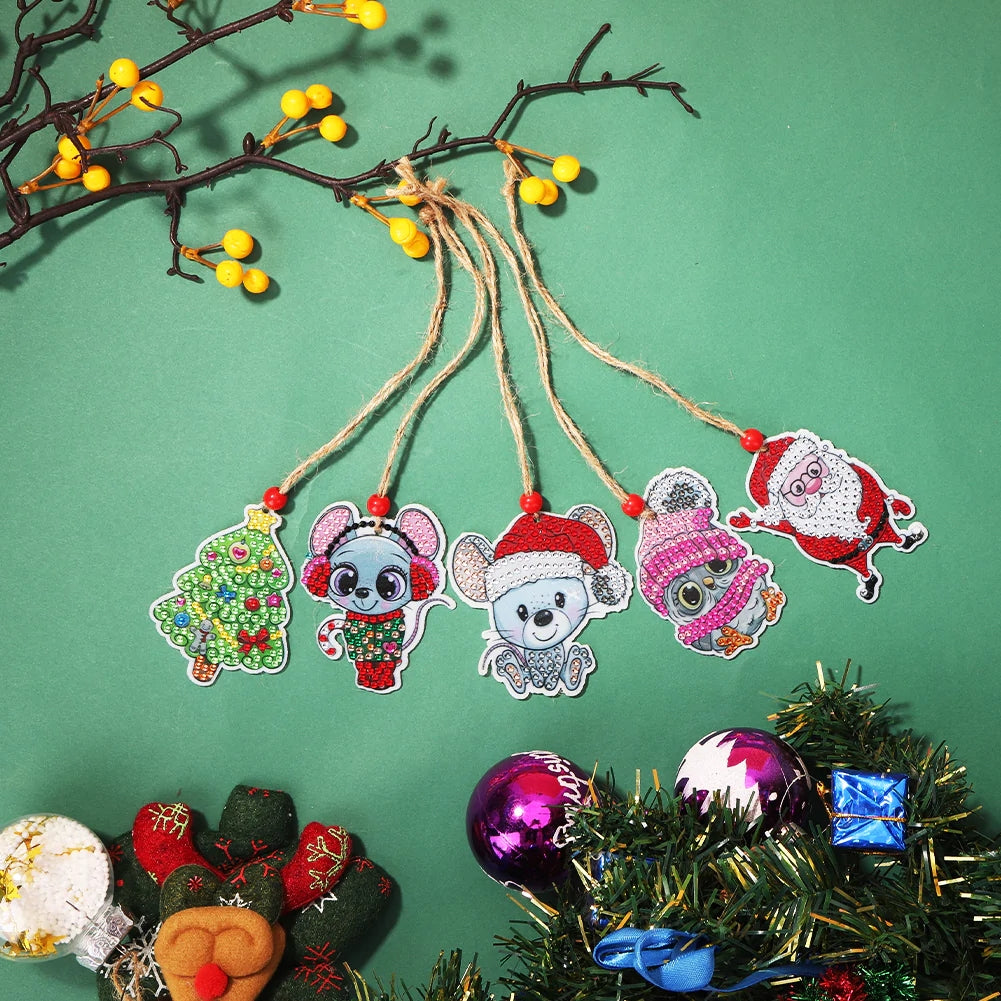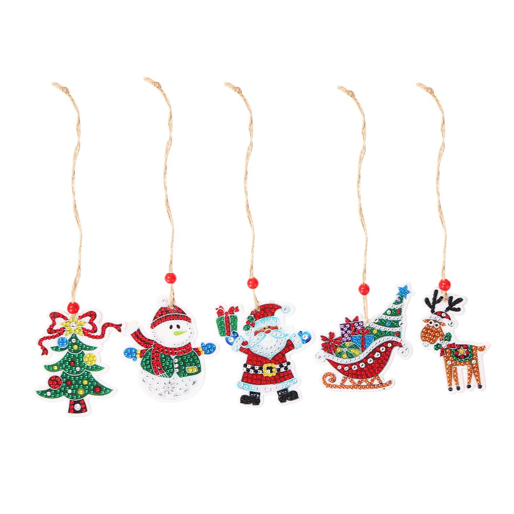 5pcs/set Double Sided Christmas DIY Diamond Painting Hanging Pendant Trees Decoration