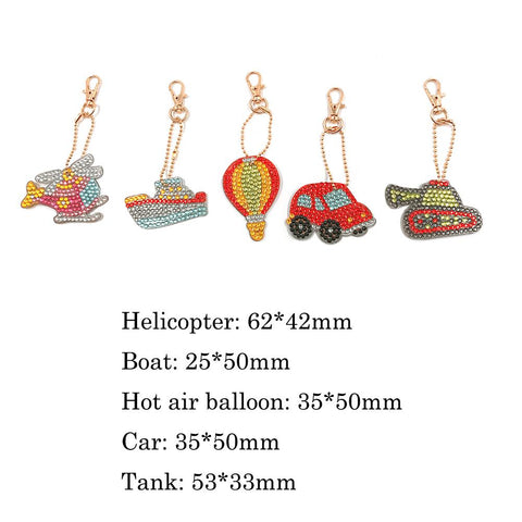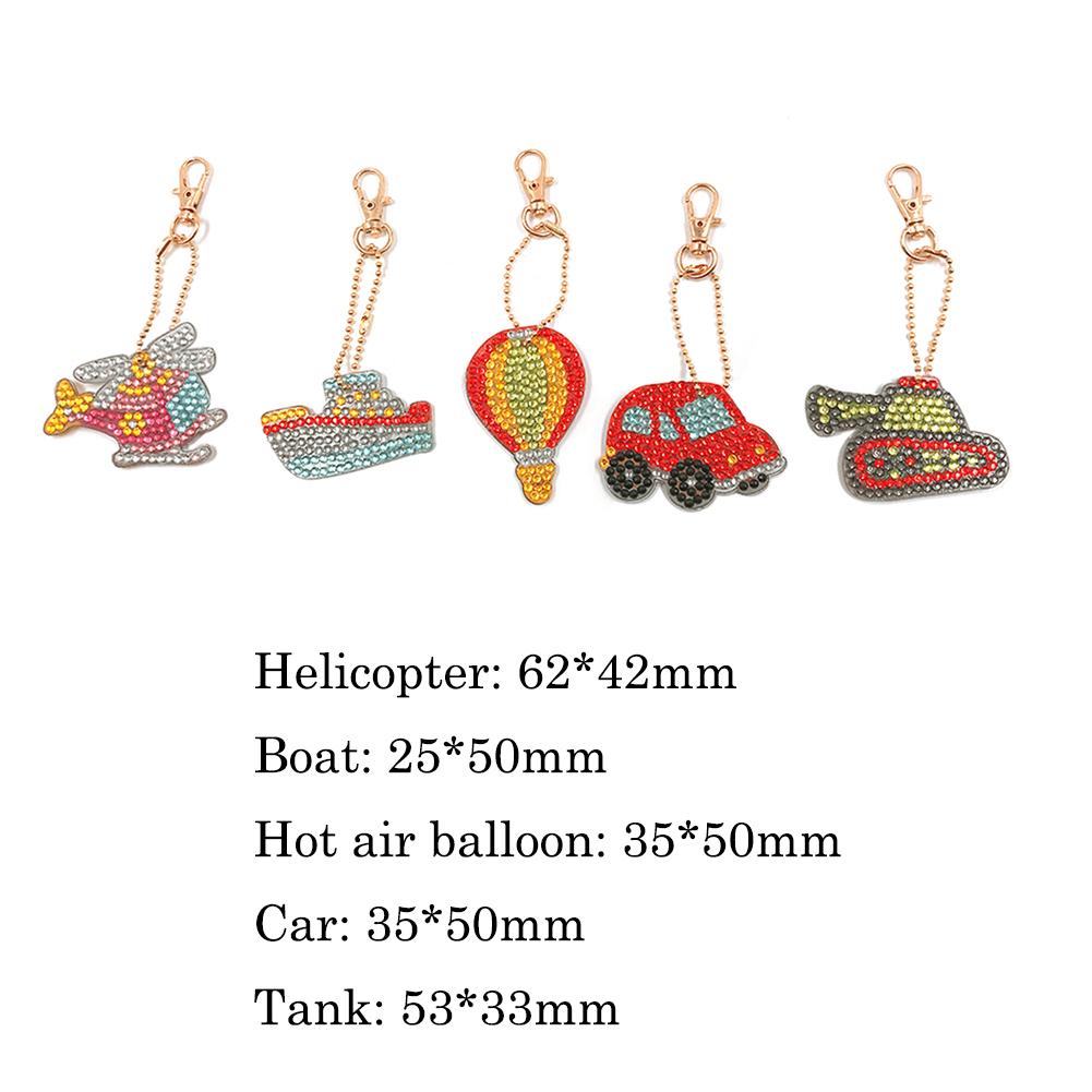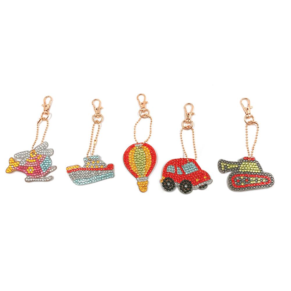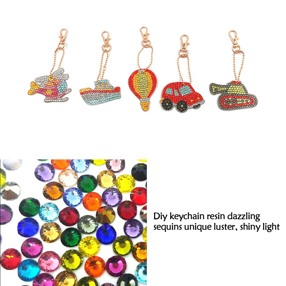 5pcs/Set DIY Full Drill Diamond Painting Traffic Vehicle Keychain Embroidery Cross Stitch Craft Needlework Key Ring