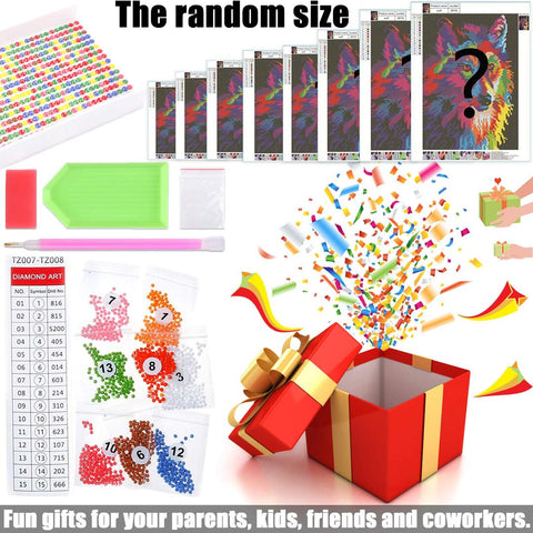 【ARE YOU HAPPY?】 The diamond pictures in our blind boxes are all individually packed. The pattern is chosen at random and its size is also random, but it is usually 30 x 40 cm / 35 x 35 cm / 30 x 30 cm. If you are lucky, you may get a bigger size of 40 x 50 cm / 40 x 40 cm / 50 x 50 cm.